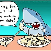“have too much on one’s plate”是個很生動的片語,好像手上的盤子裝太多的食物